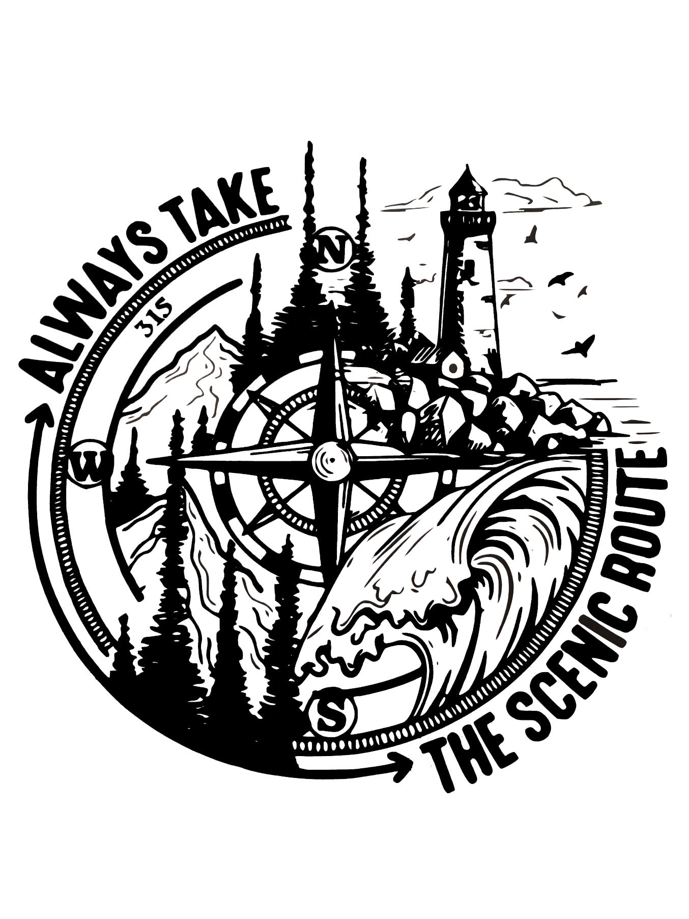 'Always Take The Scenic Route' Campervan VW Vinyl Sticker Decal