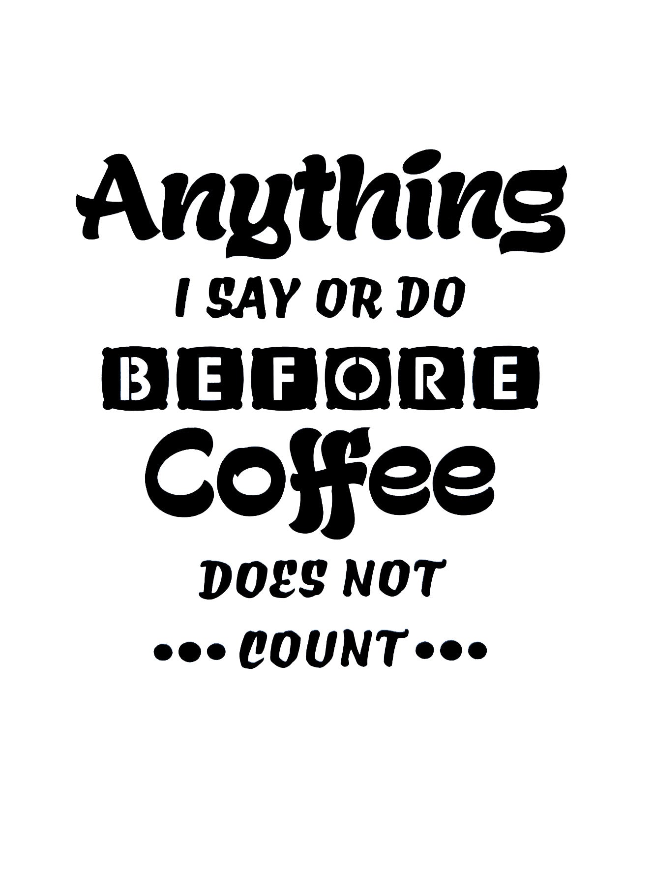 Featuring the lettering "Anything I Say Or Do Before Coffee Does Not Count", this medium-sized decal is perfect for those who love to make a statement.
