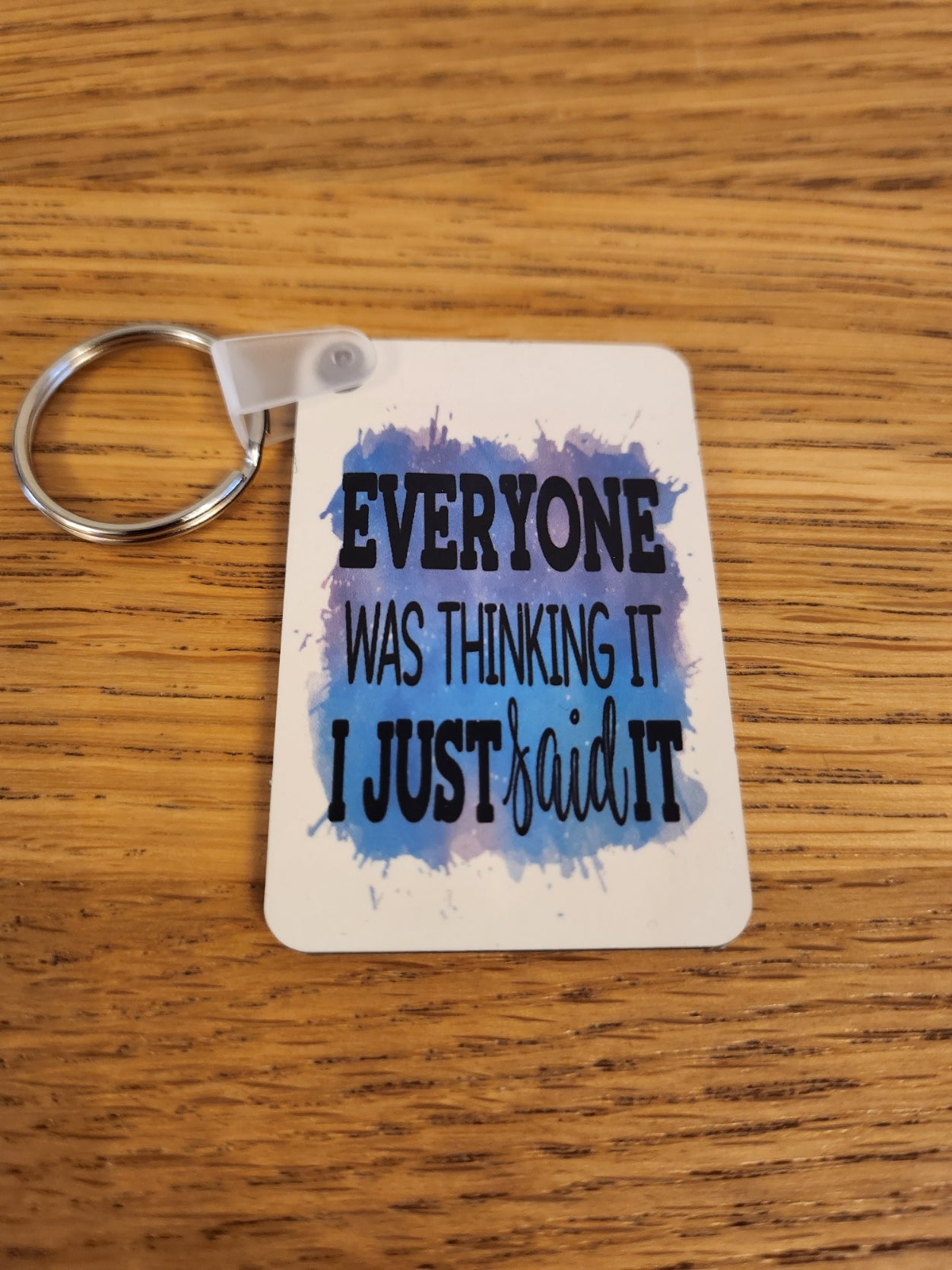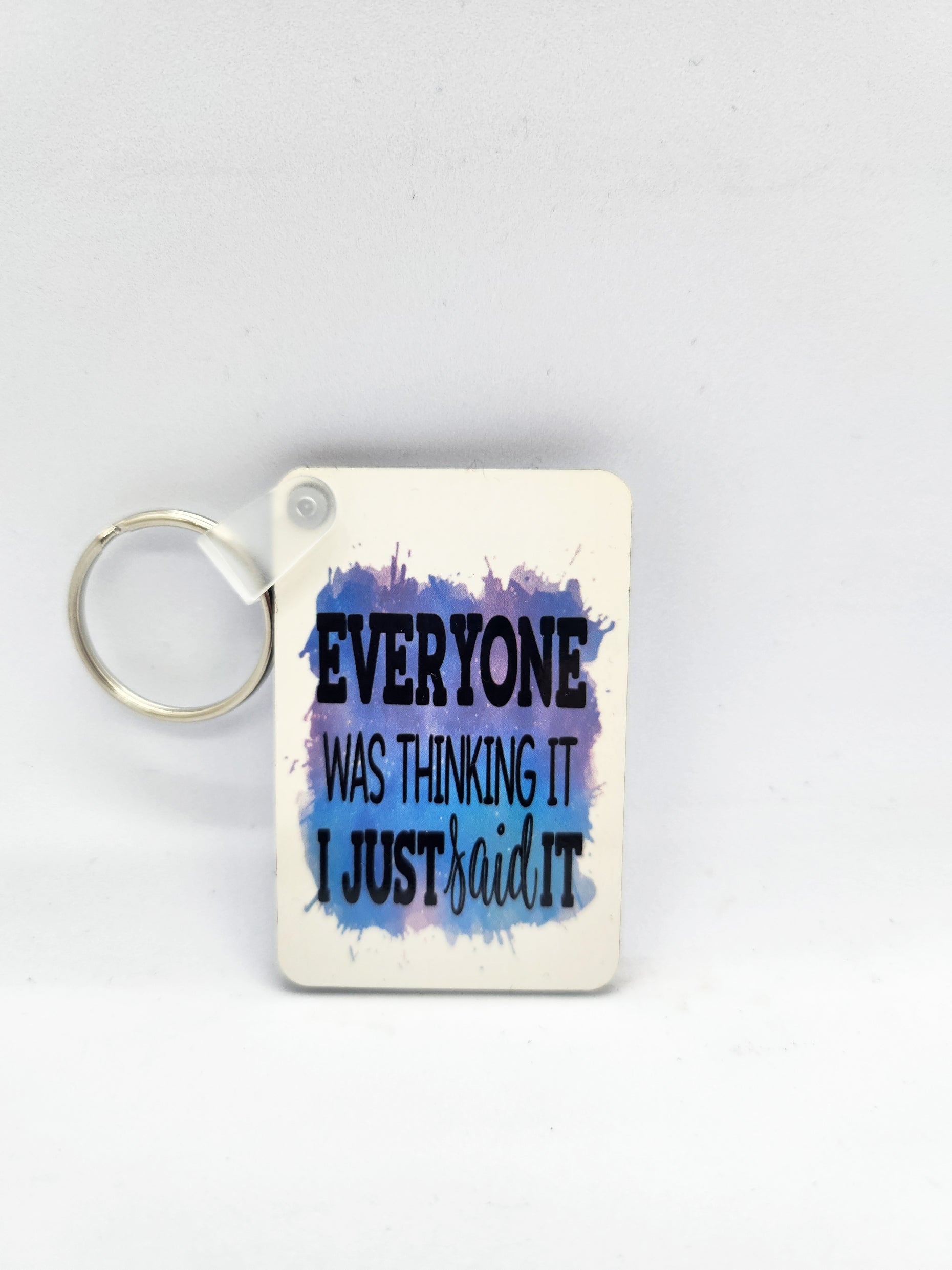 This white rectangle keyring, measuring 6cm in length, 4cm in width, and 0.2cm in thickness, is emblazoned with the humorous phrase "Everyone Was Thinking It, I Just Said It".