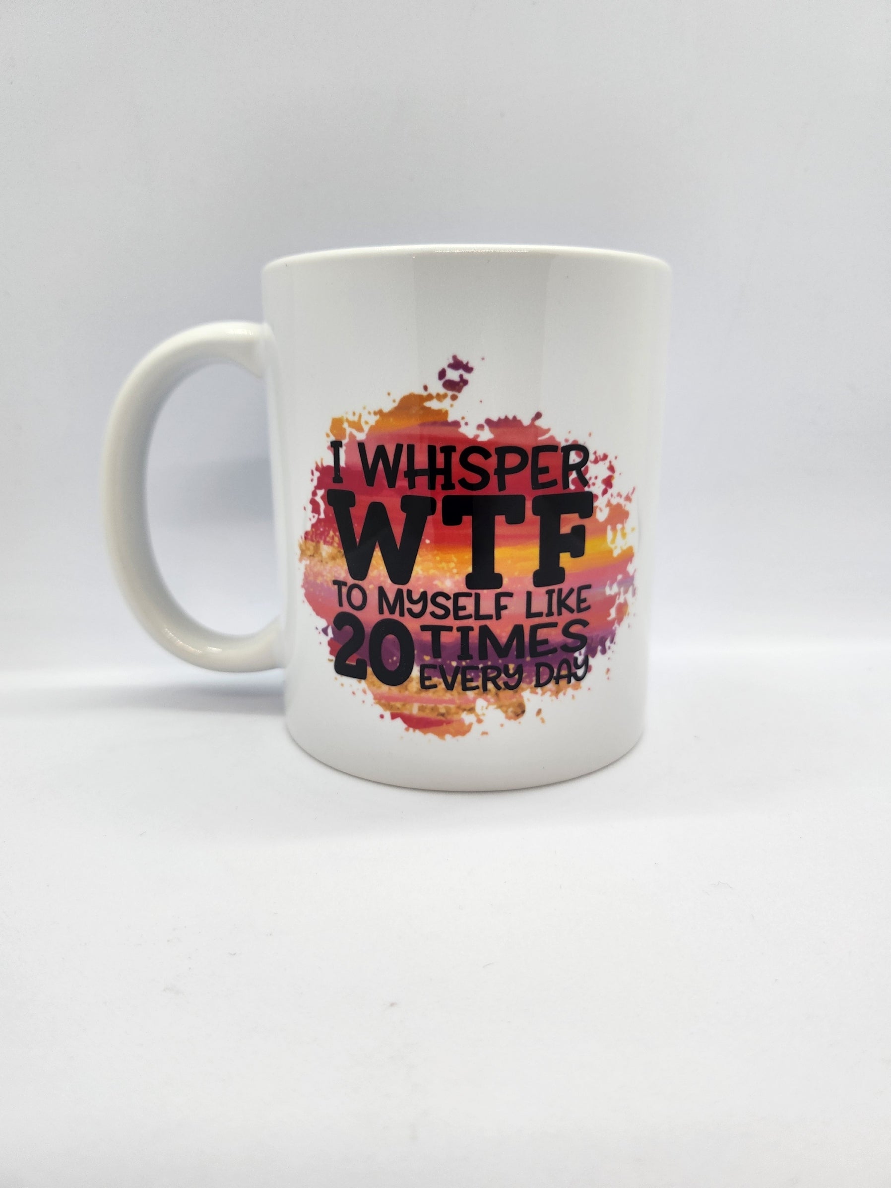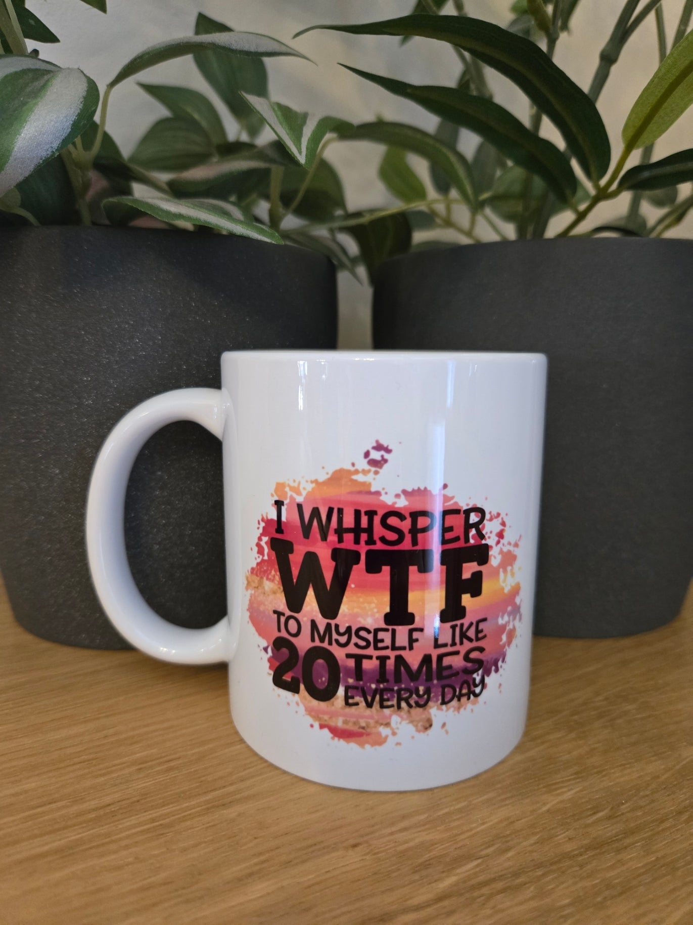 Our humorous mug is a great little gift reading 'I whisper WTF to myself like 20 times every day'