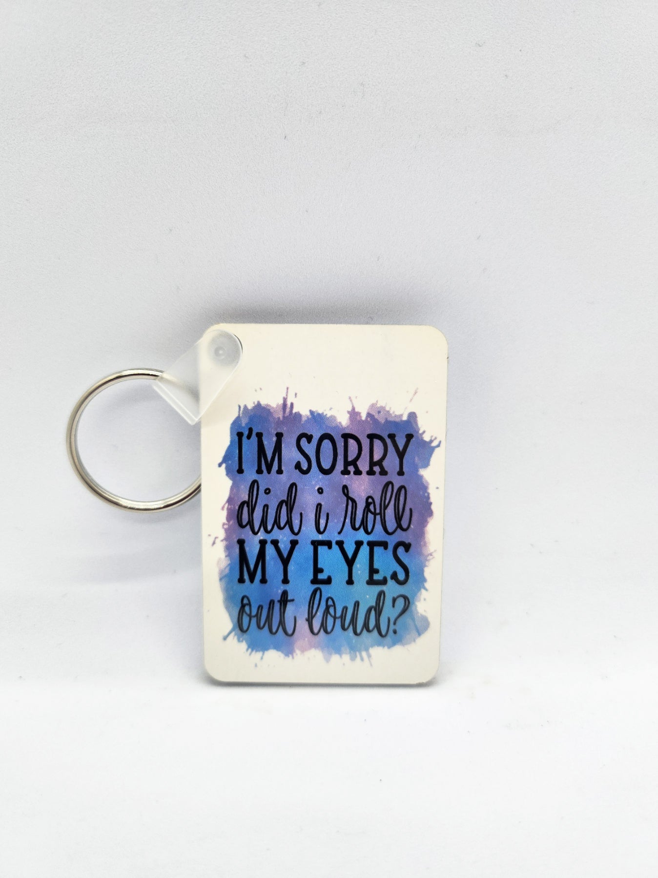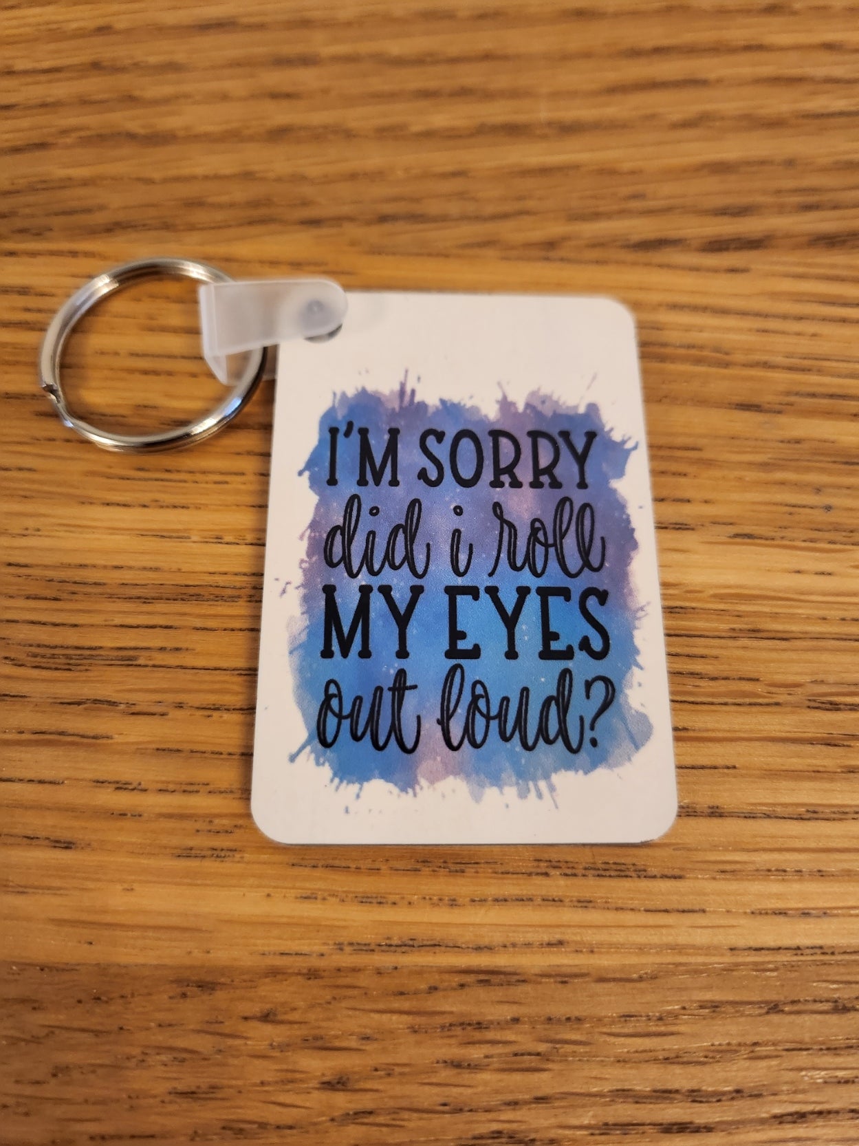This white rectangle keyring, measuring 6cm in length, 4cm in width, and 0.2cm in thickness, is emblazoned with the humorous phrase "I'm Sorry, Did I Roll My Eyes Out Loud".