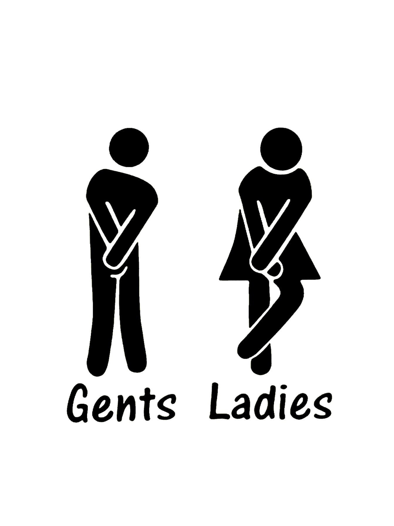 Ladies/Gents (with Wording) Toilet Bathroom Door Window Vinyl Sticker Decals add humor to bar, restaurant, cafe toilets.
