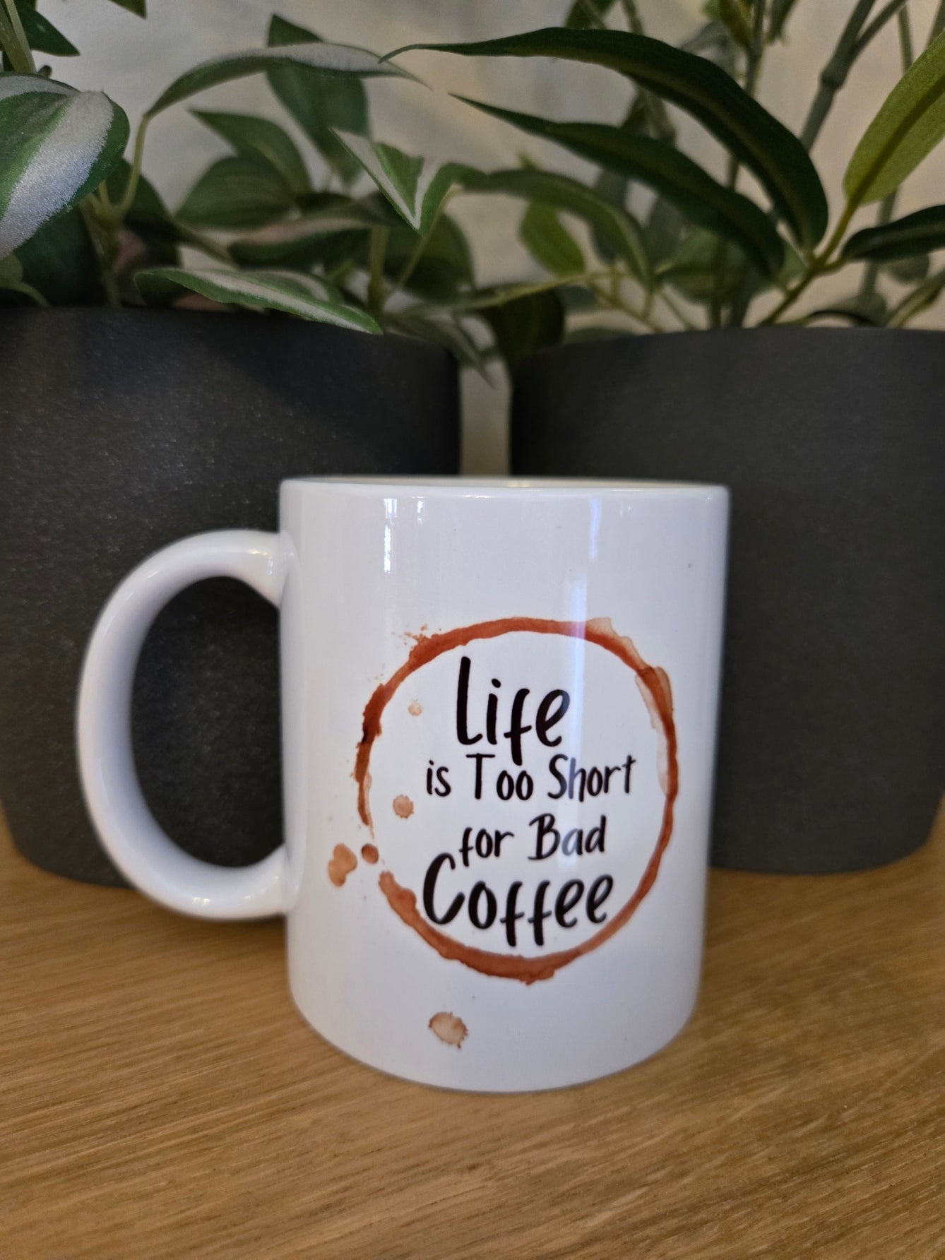 Our humorous mug is a great little gift reading 'Life Is Too Short for Bad Coffee'