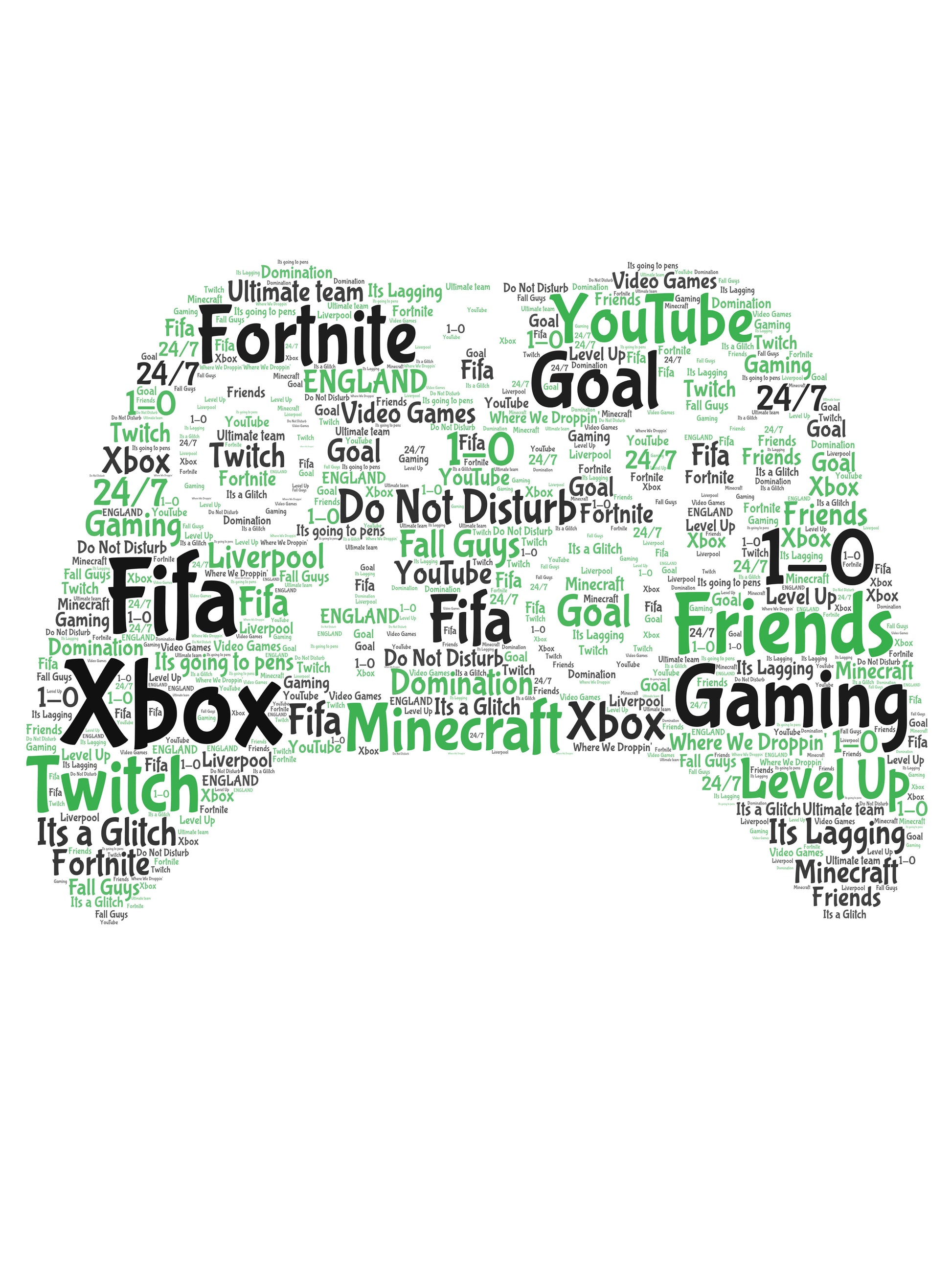 Personalised word art in the shape of a Xbox Controller