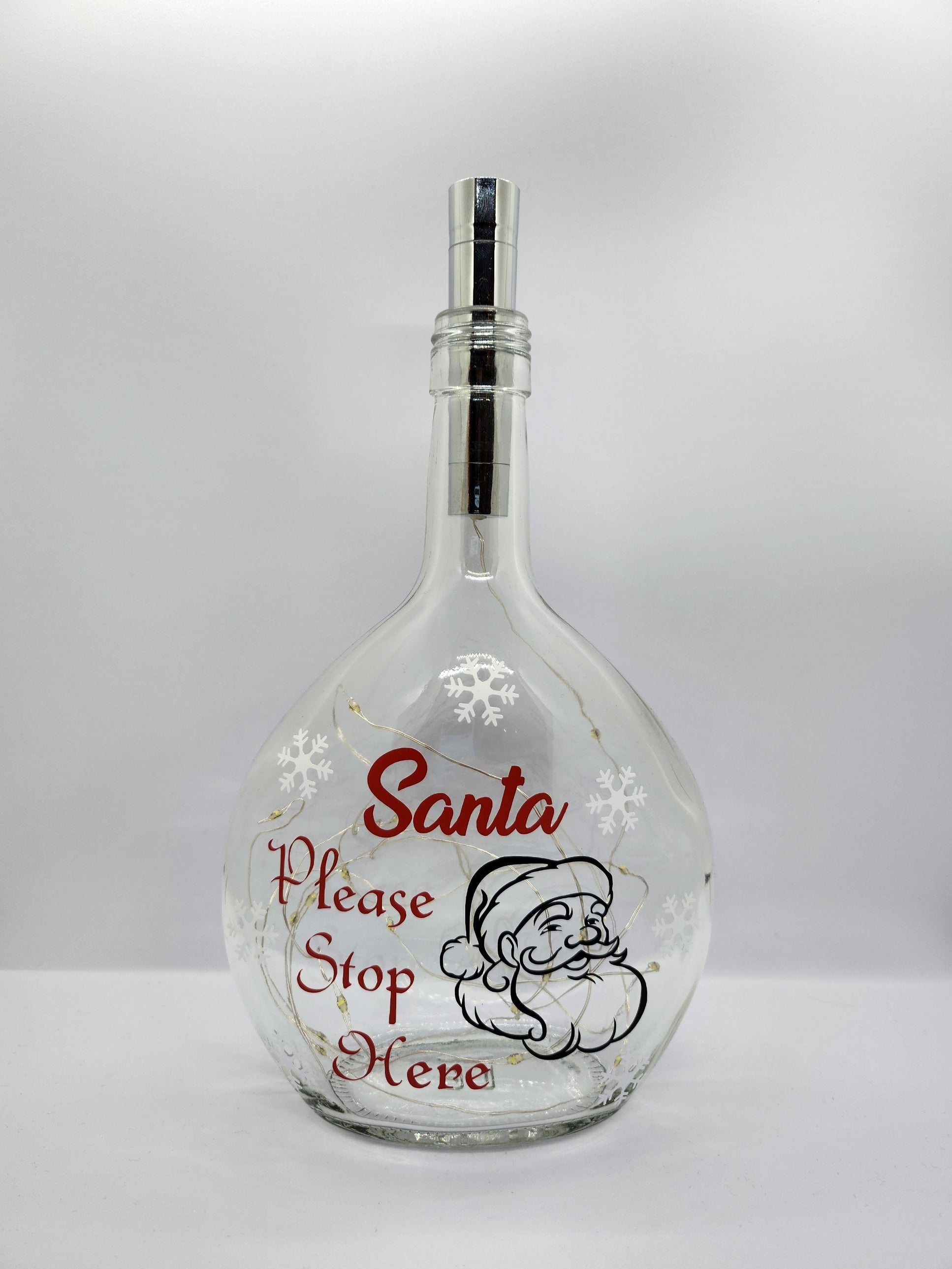 Santa Please Stop Here Glass Light Up Bottle / Night Lamp