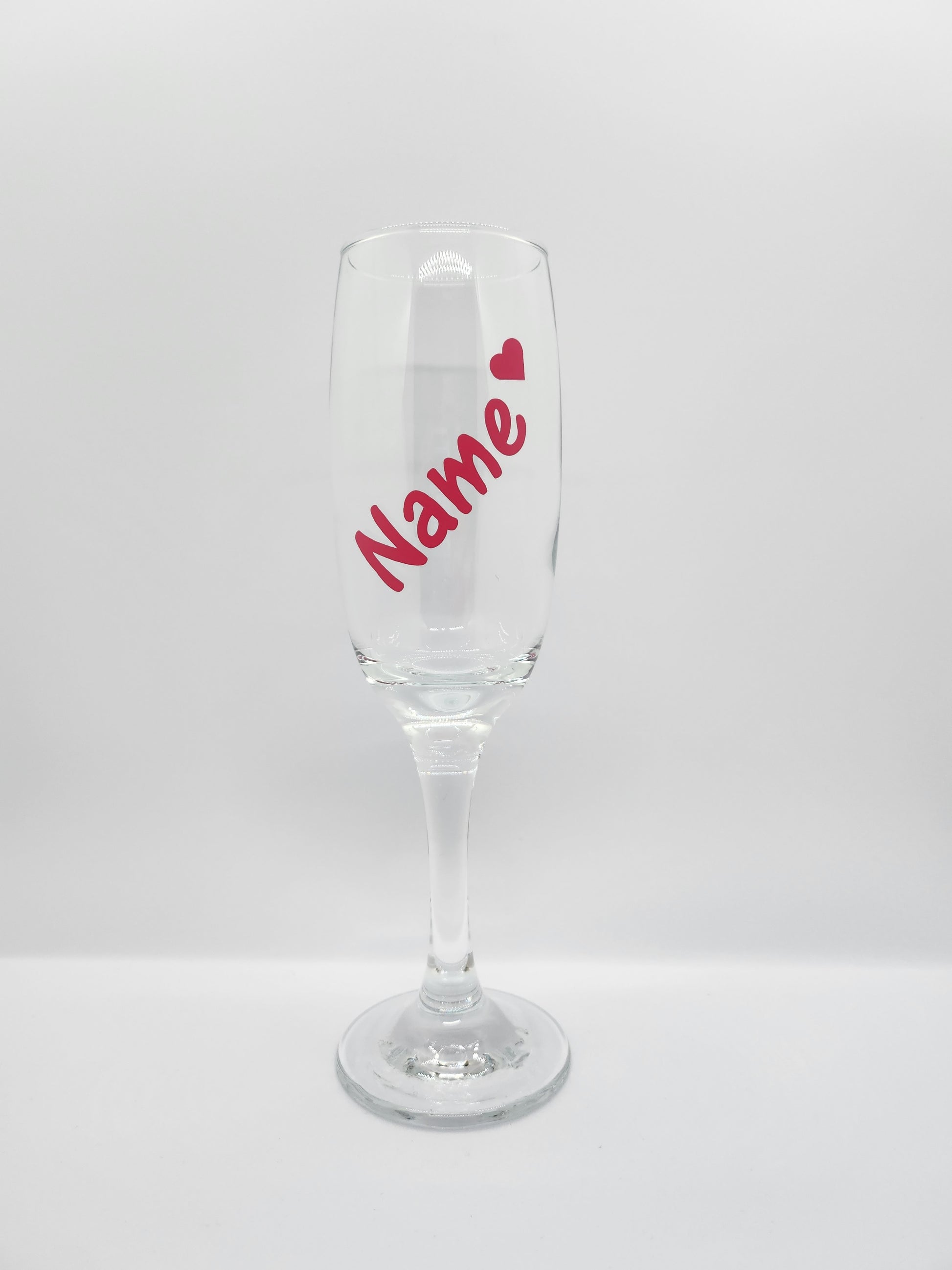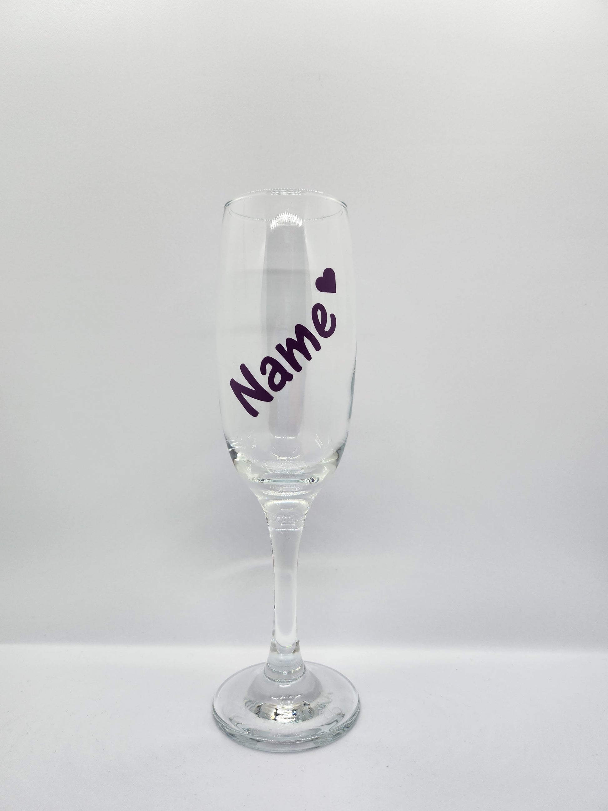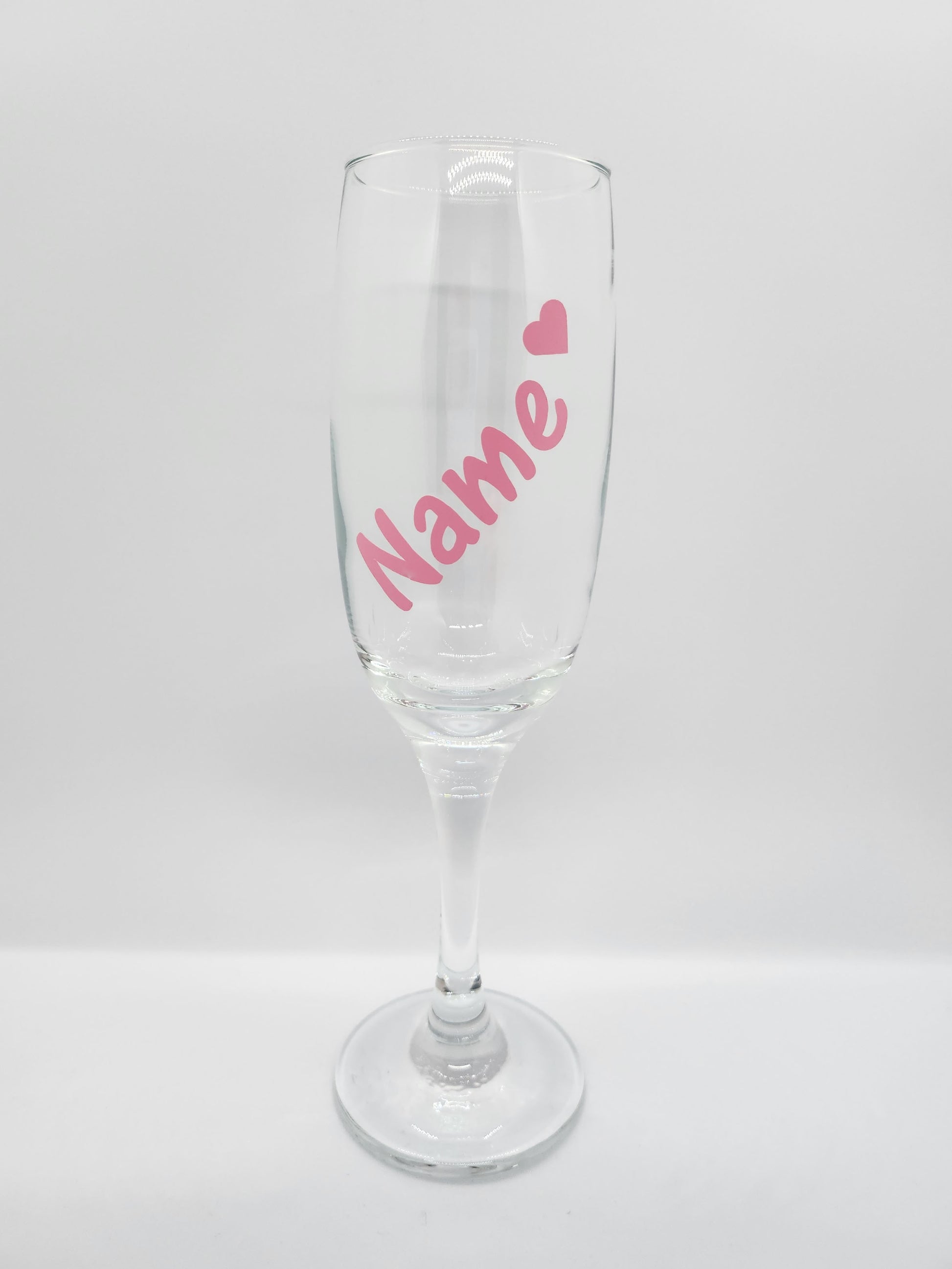 Set of 6 Personalised Word / Name / Wedding / Hen / Party Champagne Glasses with small heart decal (just add the names in the box on the cart page)