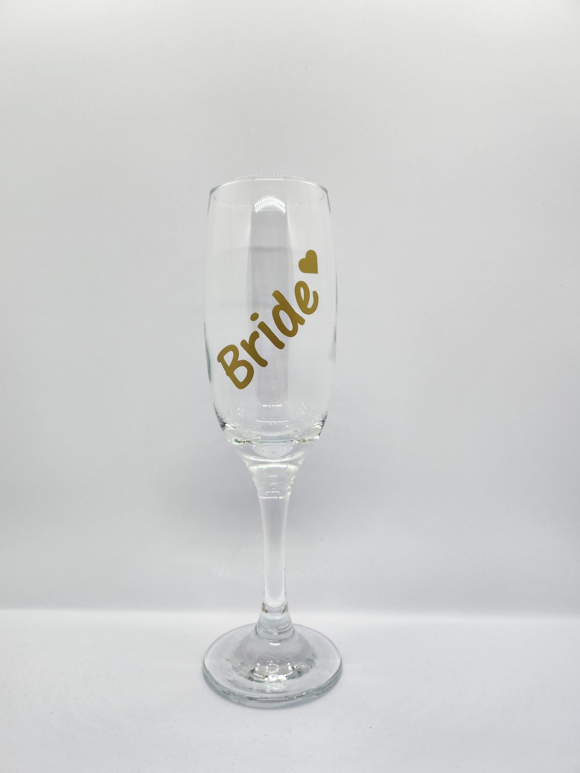 Set of 6 Bride / Hen Keepsake Glass Champagne Flutes