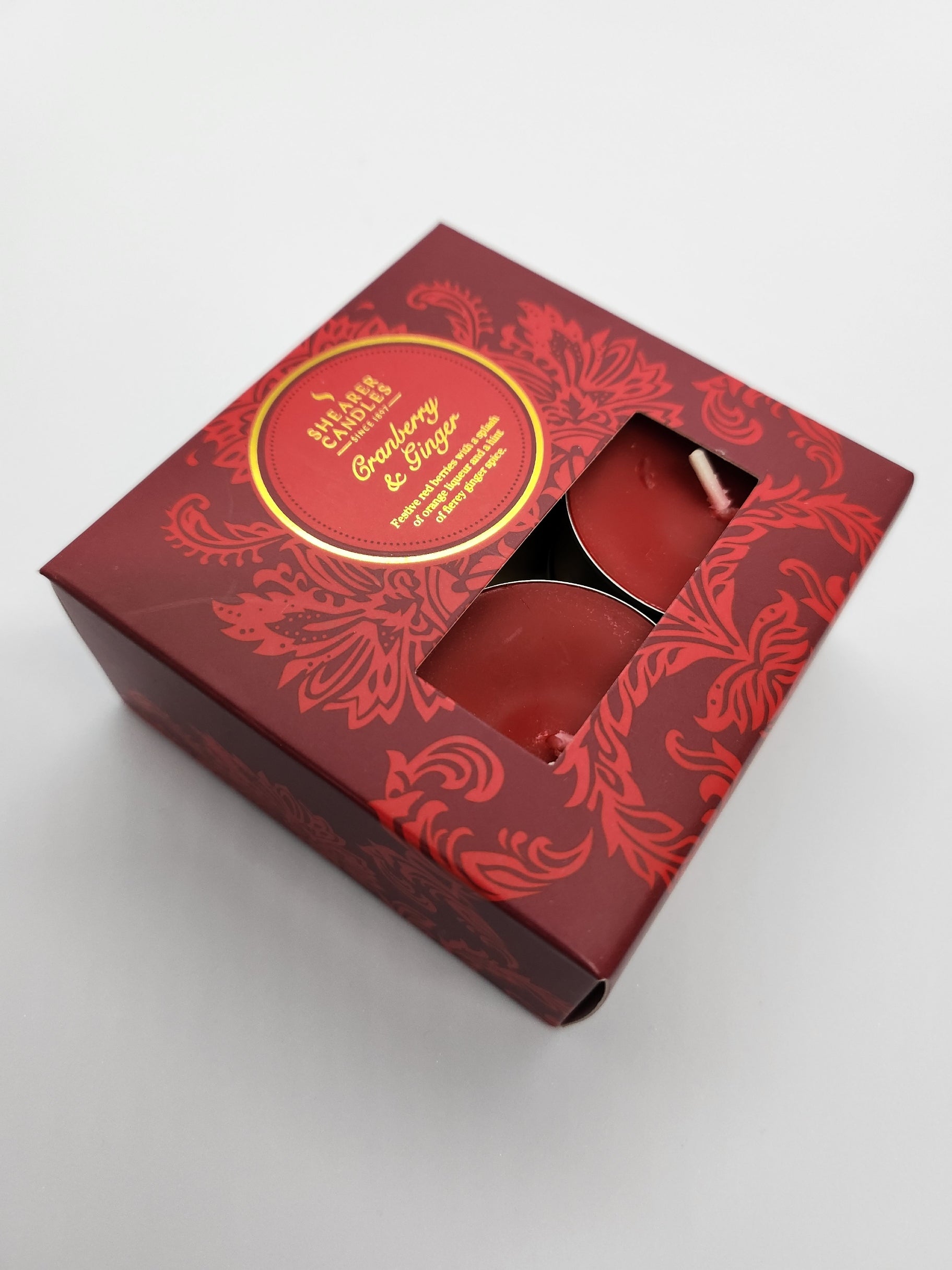 Shearer Candles - Box of 8 Tealights - Cranberry and Ginger