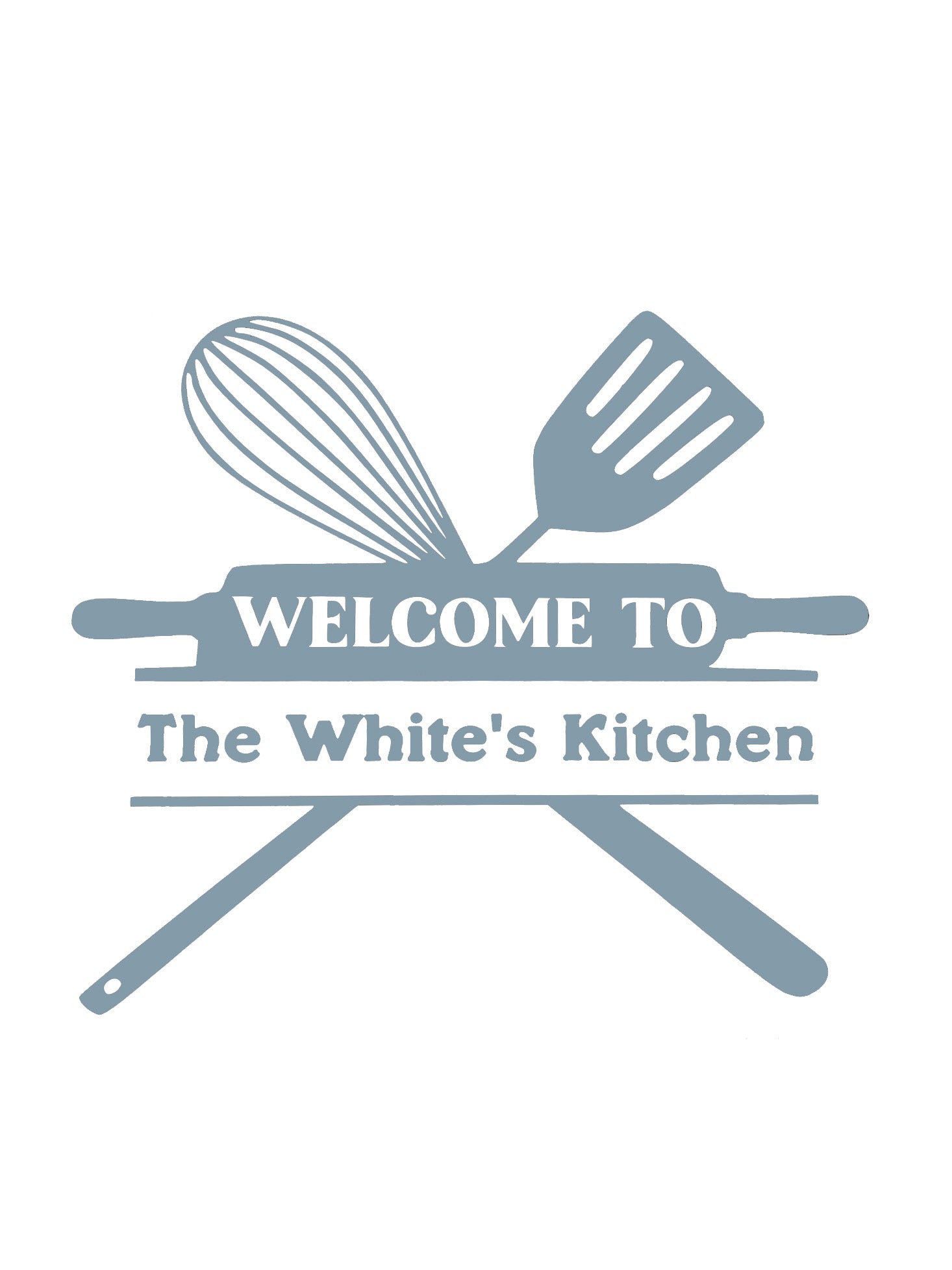 This versatile 'Welcome' Personalised Kitchen Vinyl Sticker Decal adheres to smooth flat surfaces including plastic, wood, metal, and glass, making it perfect for customizing your kitchen.